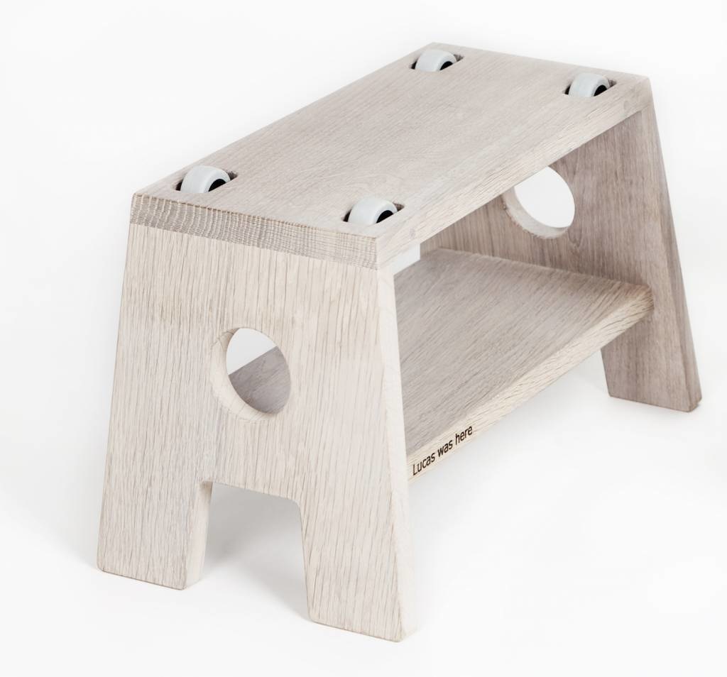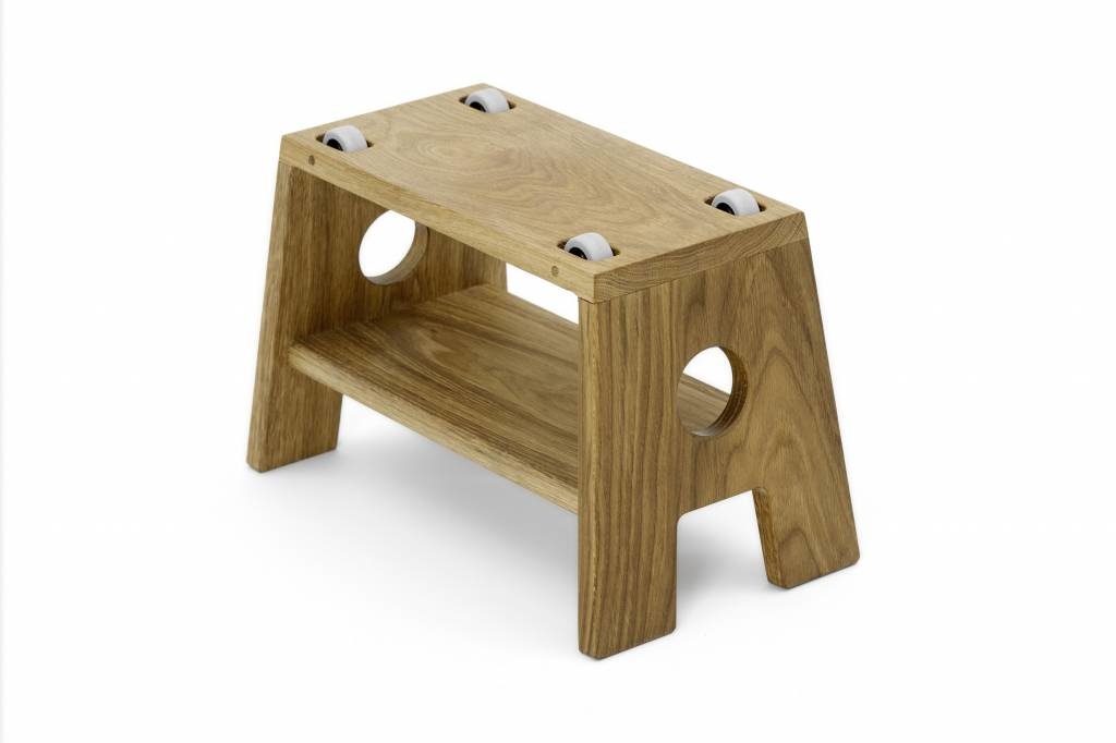 Kinderhocker Stool von Collect Furniture. Ergonomisch durchdacht und ausschließlich aus zertifizierten Naturmaterialien. Sehr schöner, langlebiger und multifunktionaler Stuhl / Hocker. Massiv Eiche Natur, dunkel gebeizt oder weiß geölt. Mit Rollen. Lesen Sie mehr