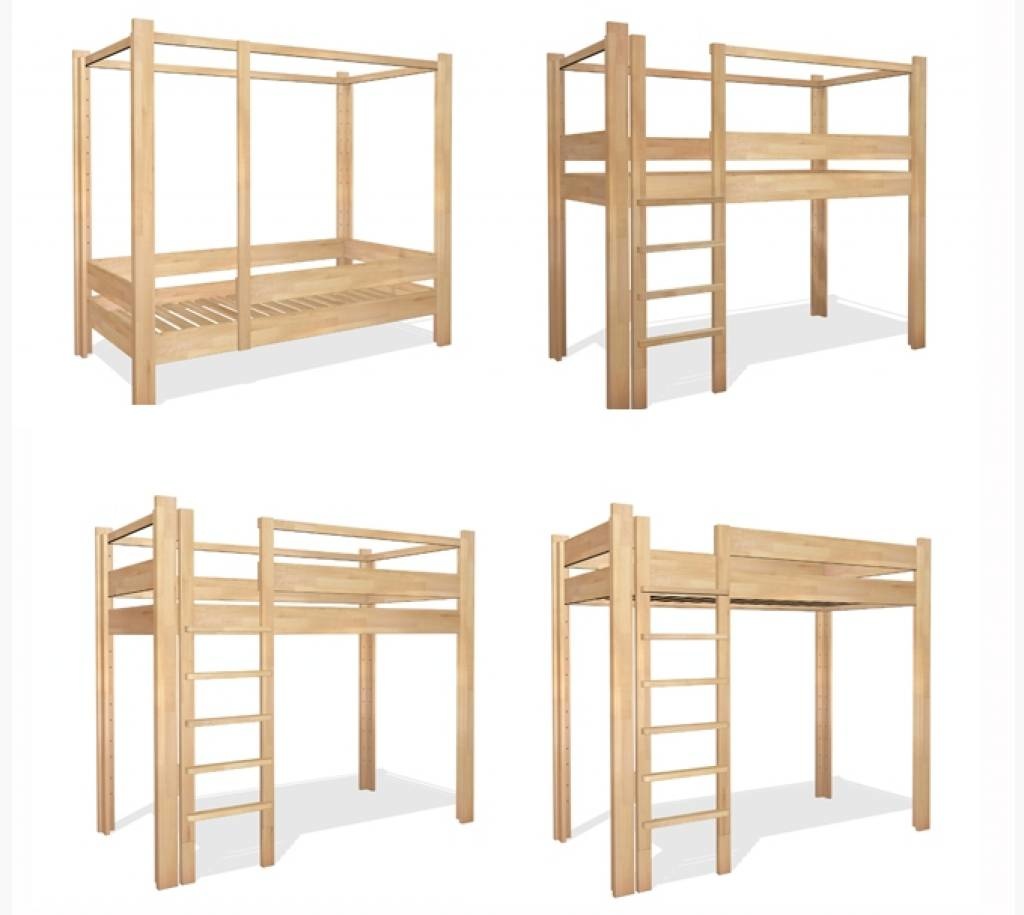 Ein Bausatz, aus dem Sie 5 verschiedenene Betten in verschiedenen Aufbauhöhen zusammenstellen können. So ist für jede Altersklasse immer die passende Bettlösung parat.