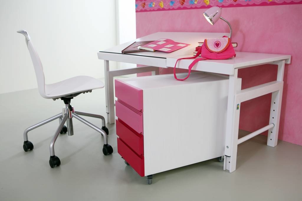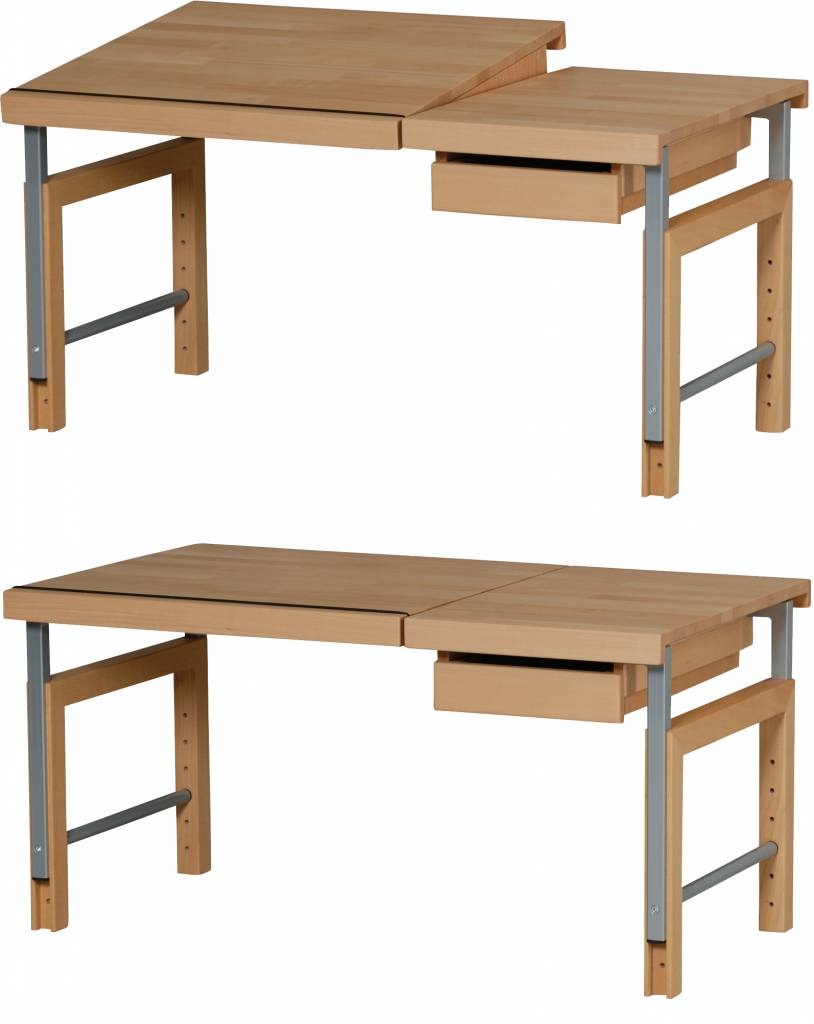 Der Schreibtisch Ziggy ist höhenverstellbar von 50-75 cm und damit schon für Vorschulkinder ab ca. 5 Jahren geeignet. Er kann von beiden Längsseiten aus benutzt werden und ist dadurch auch als Spiel-Mal- und Basteltisch für bis zu vier Kindern hervorragend geeignet. Auf Wunsch kann direkt oder später auch ein Schrägstellmechanismus für die Tischplatte dazubestellt bzw. einmontiert werden.