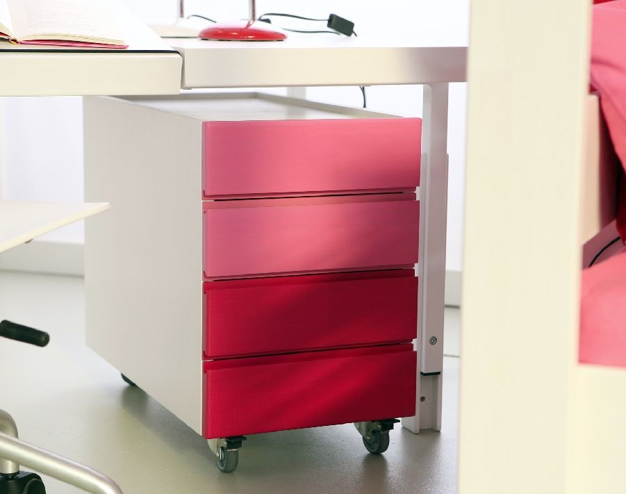 Optional Schubladencontainer auf Rollen mit vier Schubkästen, passend zu Schreibtisch Ziggy.