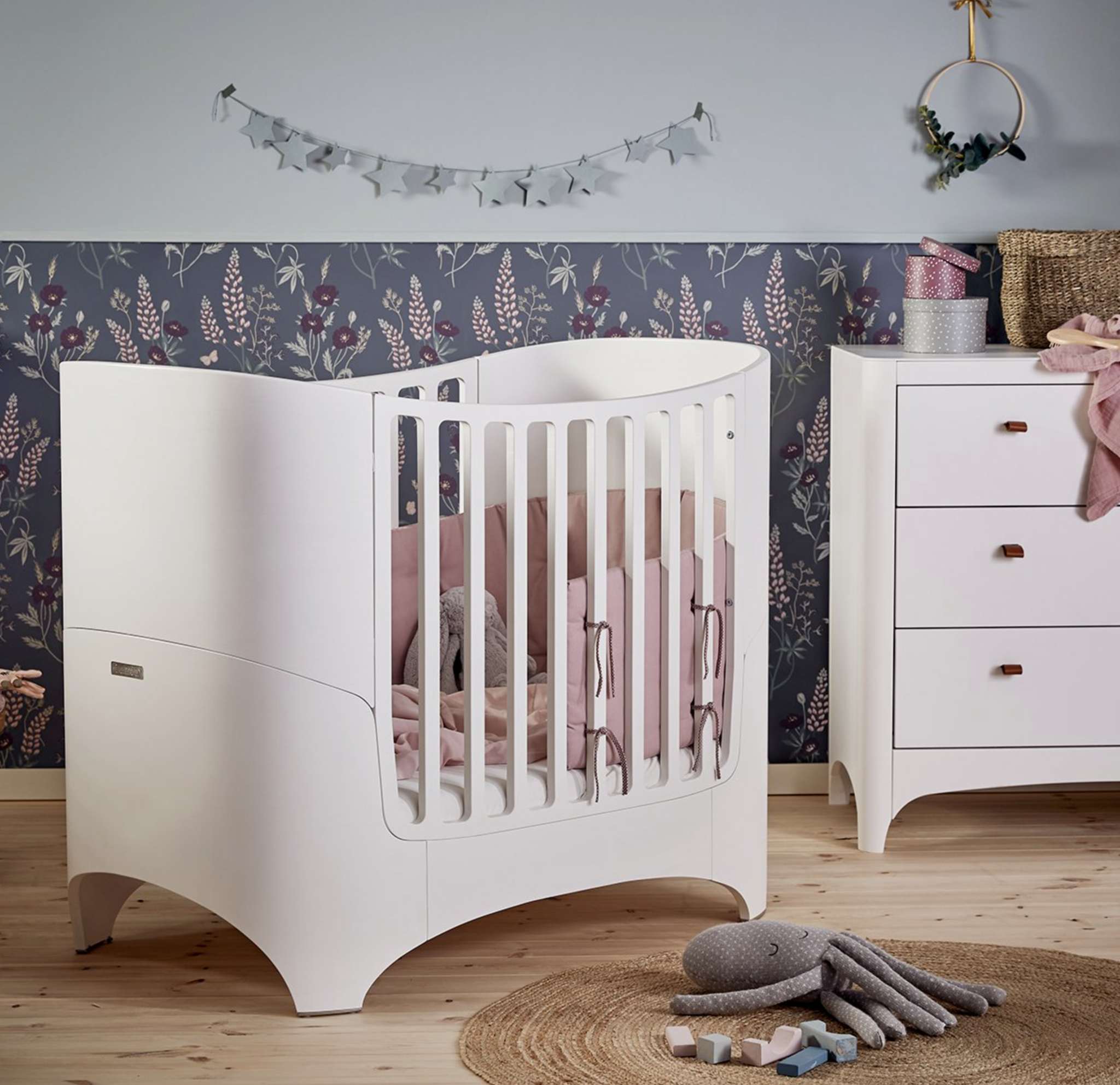 Das Babybett von Leander besticht durch sein außergewöhnliches Design. Mit den passenden Matratzen und dem Junior-Kit kann das Bett bis zu einer Länge von 150 cm erweitert werden.