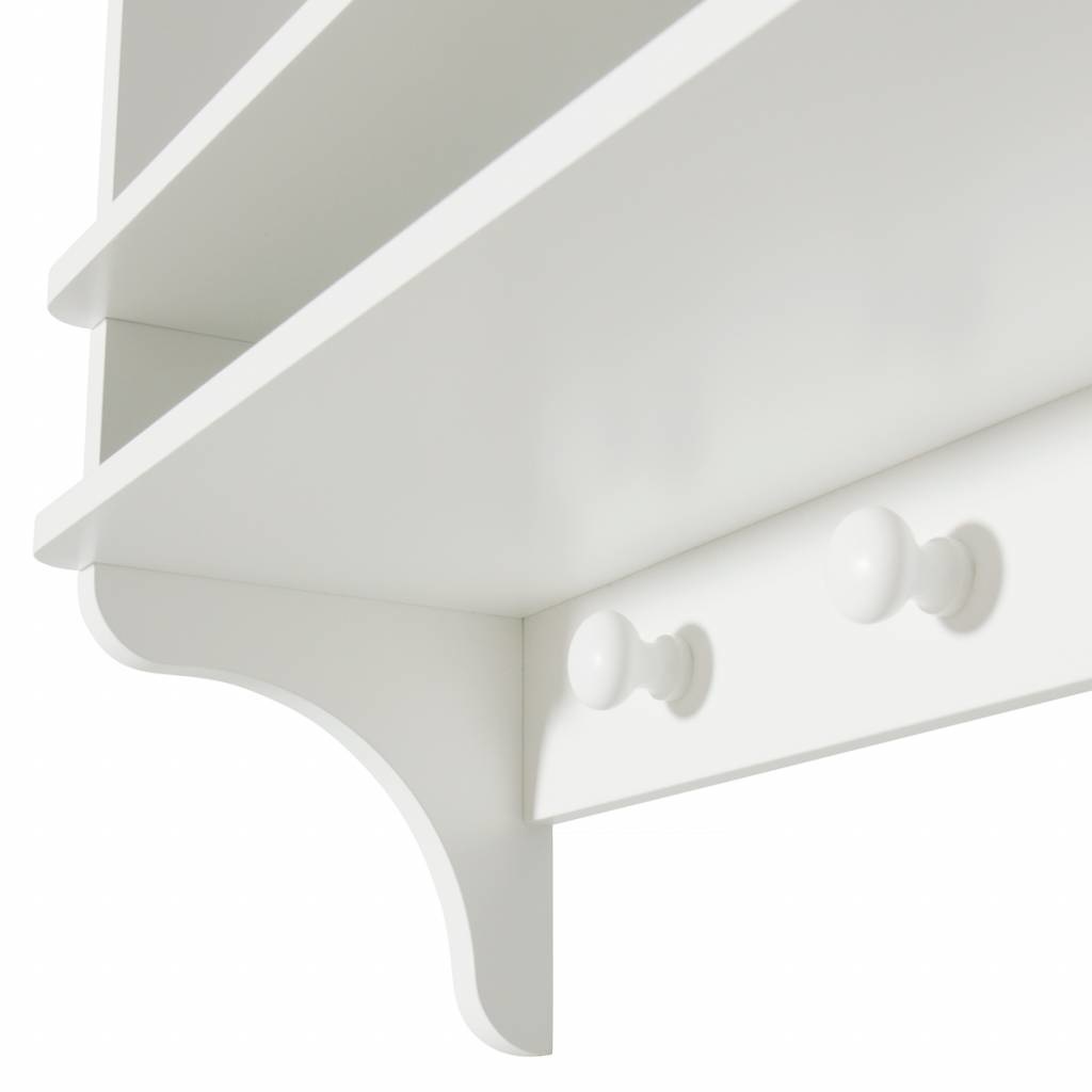 Schöne kleine Ablage für das Kinderzimmer. Das Regal kann auch über der Wickelkommode seinen Platz finden. Größe: 60 x 18 x 51 cm, Farbe weiß. Read more