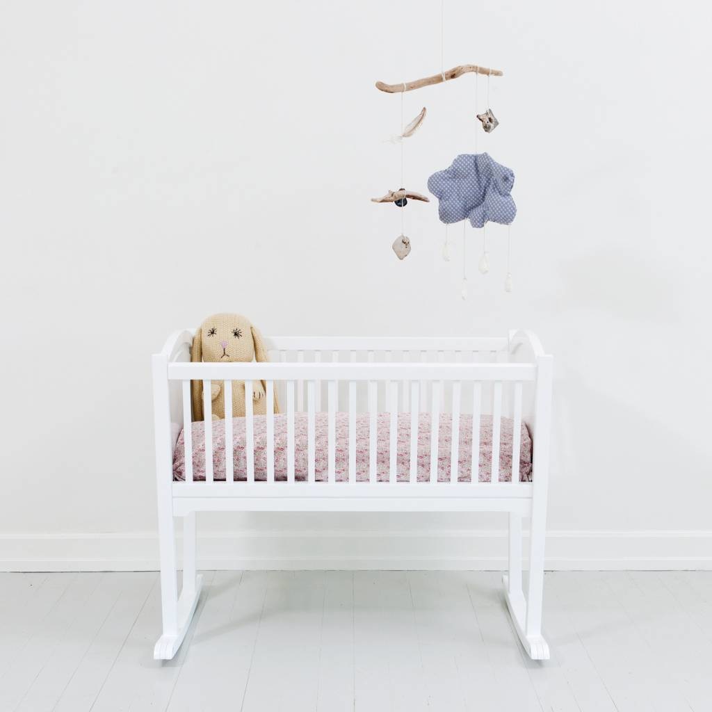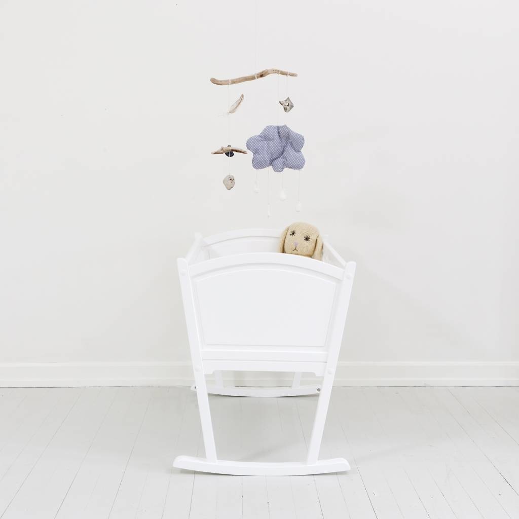 Formschöne Wiege für das neugeborene Baby. Das Design ist vom alten skandinavischen Stil inspiriert. Die einfache babywiege hat ein elegant geschwungenes Kopf- und Fußstück sowie Sprossen an den Seiten. Mit Wiegesperre. Größe: 57 x 86 x 72 cm. Read more